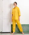 Brighten up your downtime with this sunflower yellow co-ord set — a cheerful blend of comfort, ease, and playful embroidery. Designed for both lounging and casual outings, it adds a burst of sunshine to your wardrobe.