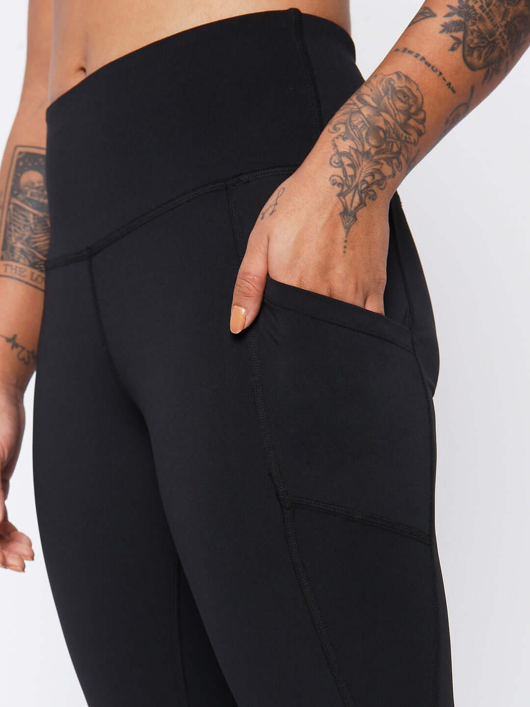 - High-waist fit with 7/8 cropped length for a sculpted, flattering look