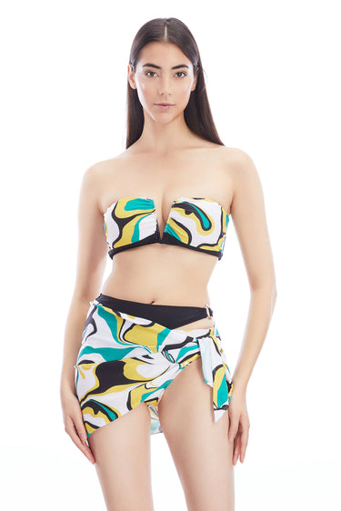 A playful and practical essential, this mini sarong skirt features a vibrant green abstract print that instantly elevates your swim look.