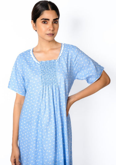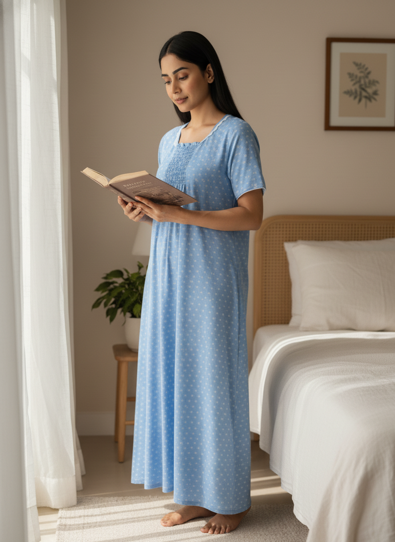 Ease into comfort with this airy cotton nighty — crafted from soft, breathable pure cotton and finished with delicate detailing for everyday elegance. Lightweight and relaxed, it’s made to keep you cozy all night long.
