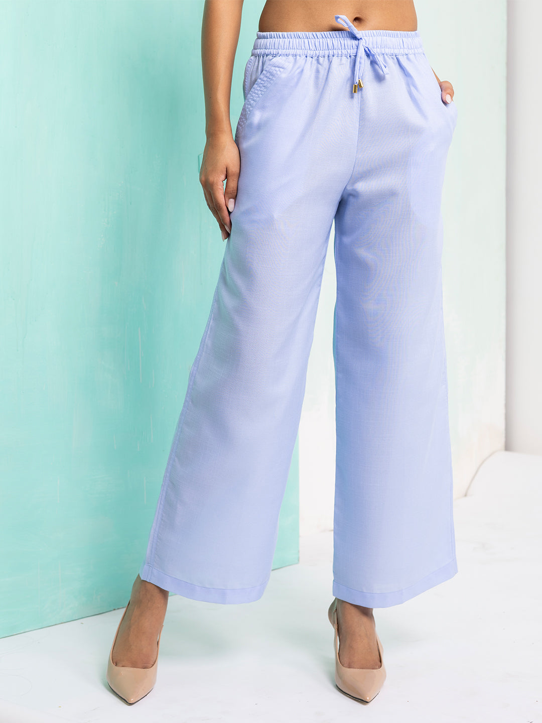 - Two-piece co-ord set in a soft pastel blue hue crafted from 100% pure linen