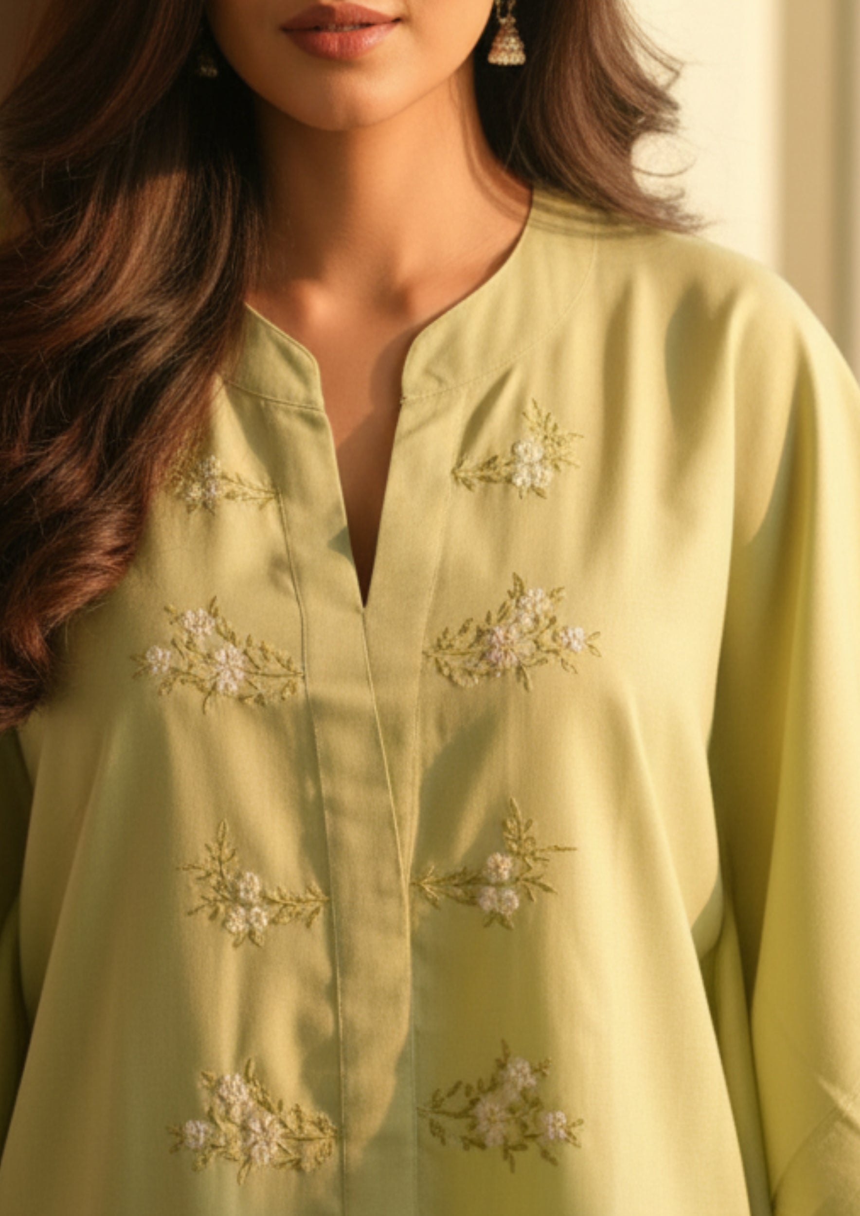 • Embroidered floral motifs on the front panel for a refined, artisanal finish