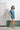 - Collarless top enhances the casual, laid-back vibe