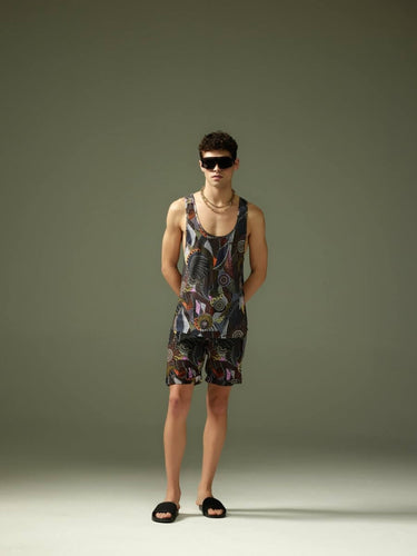 The Fanel Resort Vest is a low-cut tank crafted in textured luxury crepe — made for effortless summer lounging. Light, sleek, and versatile, it’s the go-to layer for poolside sunbathing or resort wear styling.