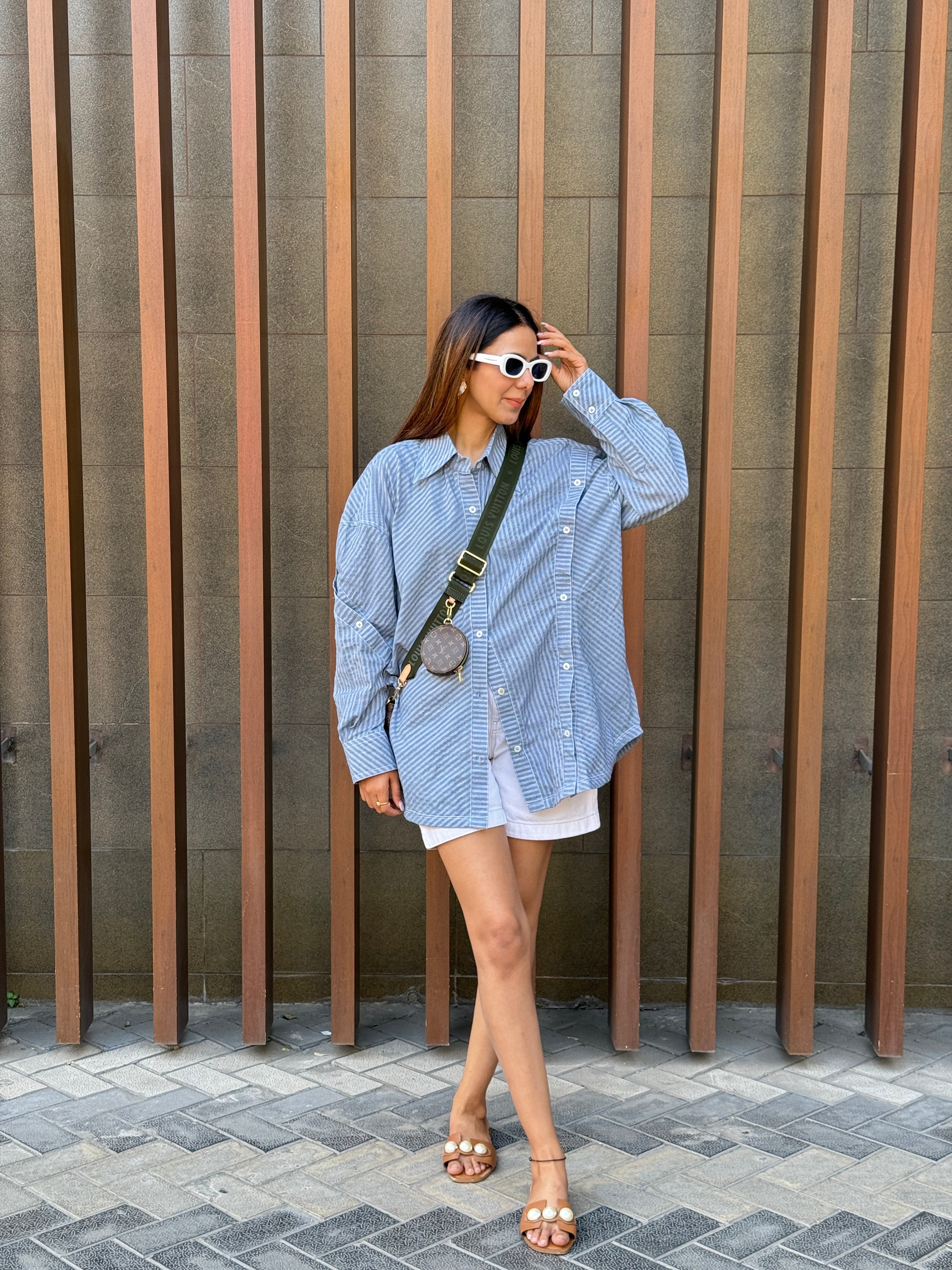 Effortless and modern, this 100% cotton shirt is designed in a relaxed fit with a contemporary twist. Featuring a bias cut and diagonal stripes, it creates a flattering silhouette with a playful edge. Lightweight and breathable, it’s perfect for casual styling or layering through the seasons.