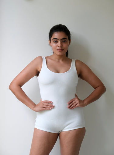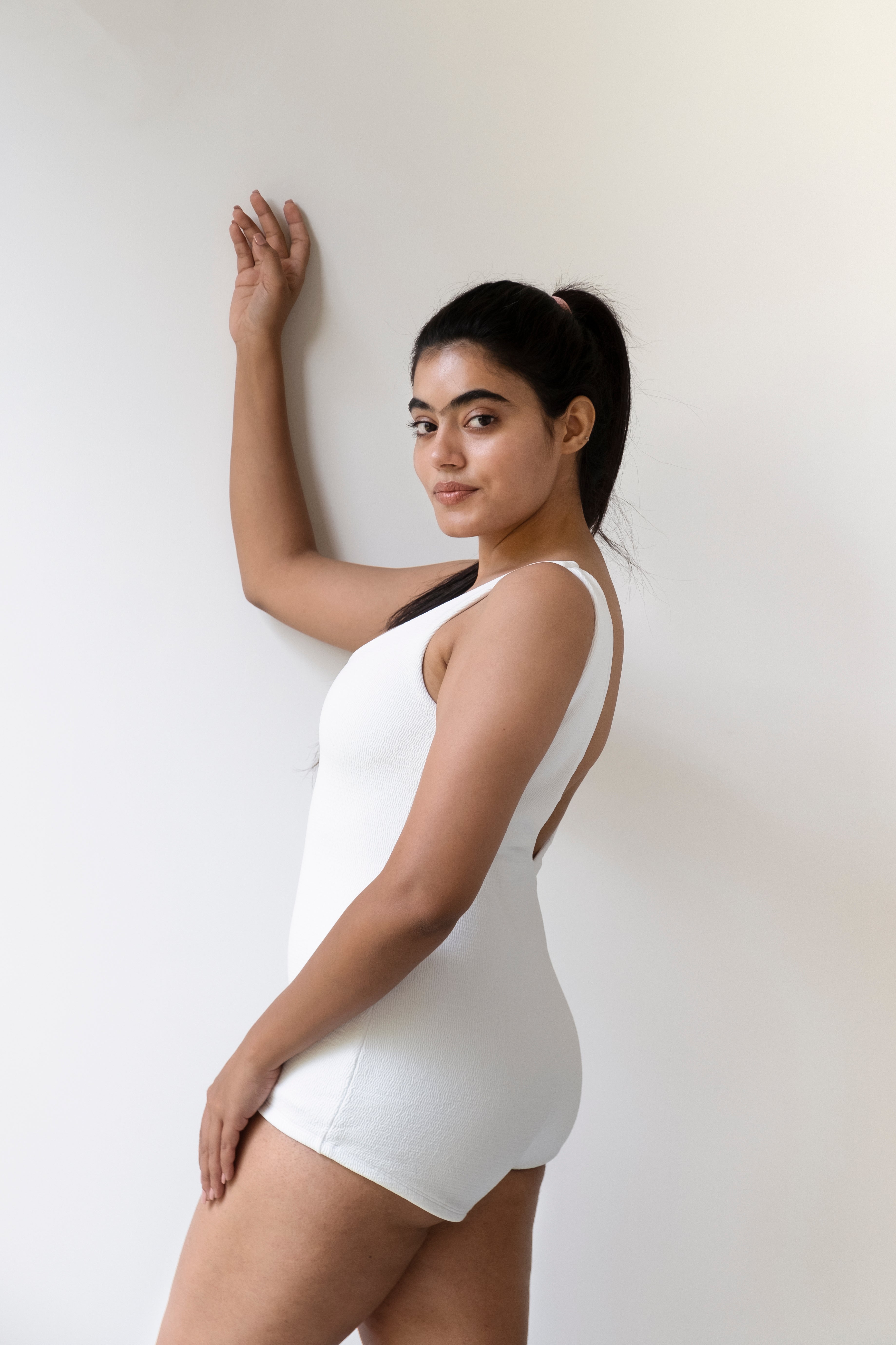 Made for support and ease, this swimsuit is cut in compressive fabric that sculpts comfortably. A classic round neckline at the front and back adds timeless appeal, while extra bottom coverage keeps it versatile for all-day wear.