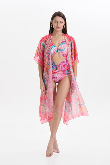 The Lunas Cape is the epitome of effortless glamour and resort sophistication. Crafted from lightweight, semi-sheer fabric, it drapes fluidly over the body, creating graceful movement with every step. Designed to layer beautifully over swimwear or resort ensembles, this cape adds a touch of mystery and drama to any look, making it your go-to piece from sunlit beach strolls to elegant sunset dinners.