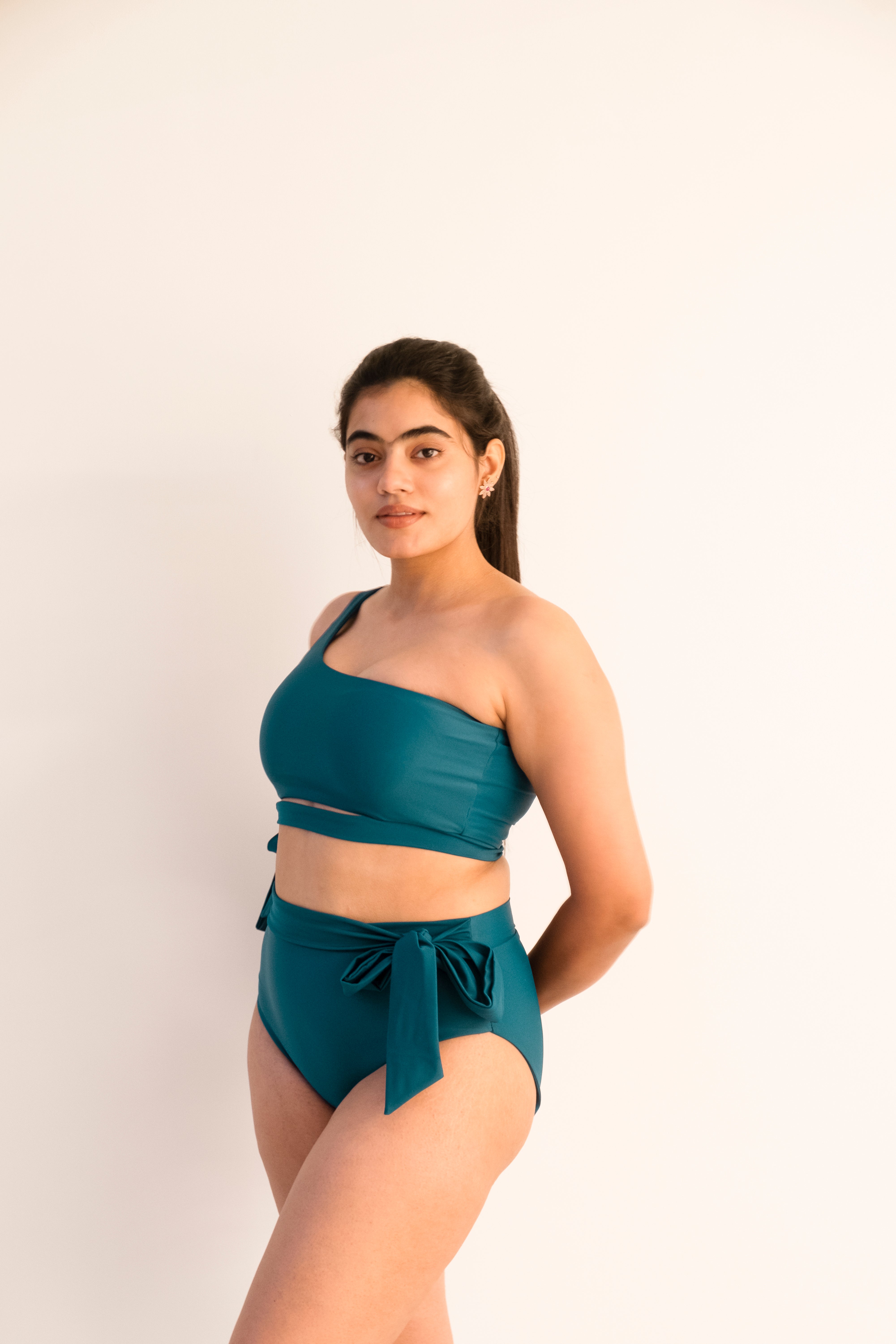 Designed for both style and support, these bikini bottoms are crafted in premium Italian fabric that sculpts with ease. The high-waist silhouette flatters the shape, while a front knot detail adds an elegant touch. Extra coverage ensures confident wear from beach to poolside.