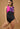 A bold black and pink printed swimsuit elevated with a dramatic stitched cape detail at the neck. Designed to stand out, this piece blends playful flair with sleek sophistication.