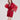- Luxurious red satin with elegant Chantilly lace sleeves