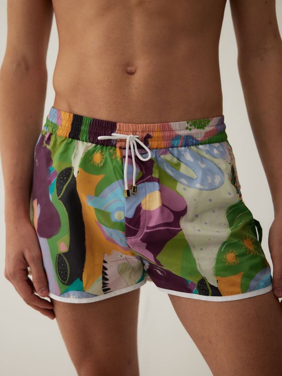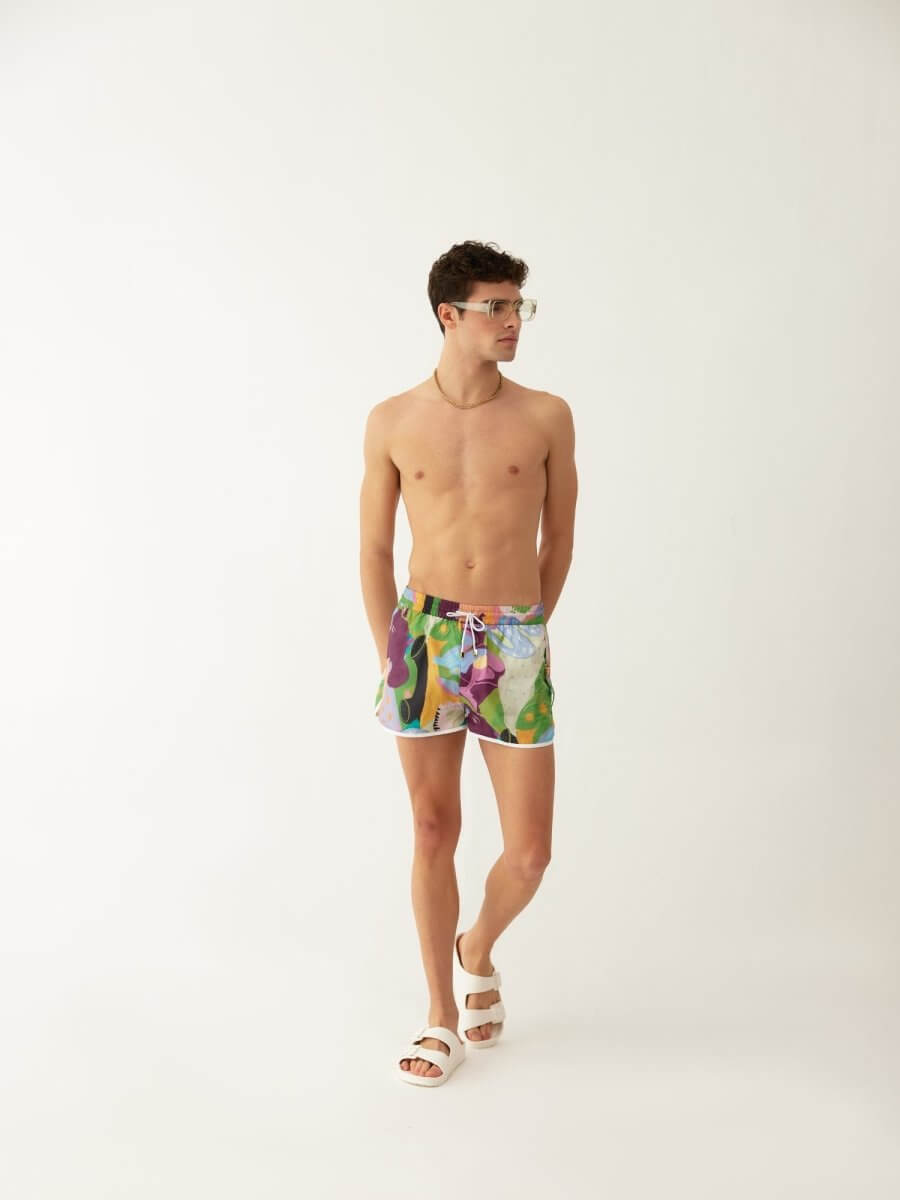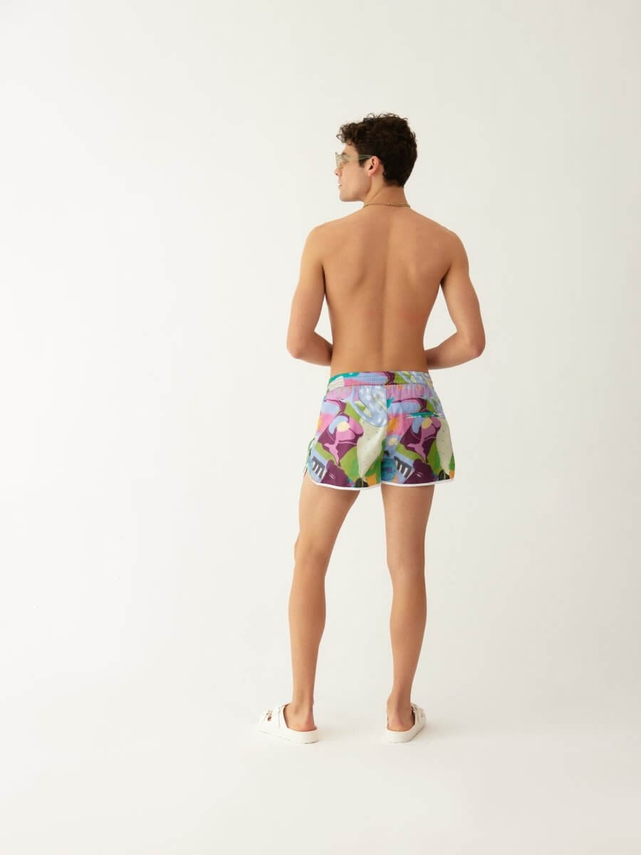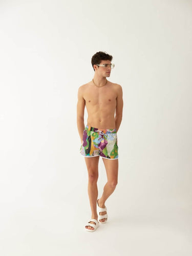 Technikos is a technically constructed swim short built for performance and style. Designed with an ergonomic fit that flows with the body, it features a unique side clasp strap to hold sunglasses, keys, or small accessories. A tie-up waist ensures the perfect fit, while a back zip pocket adds secure storage.