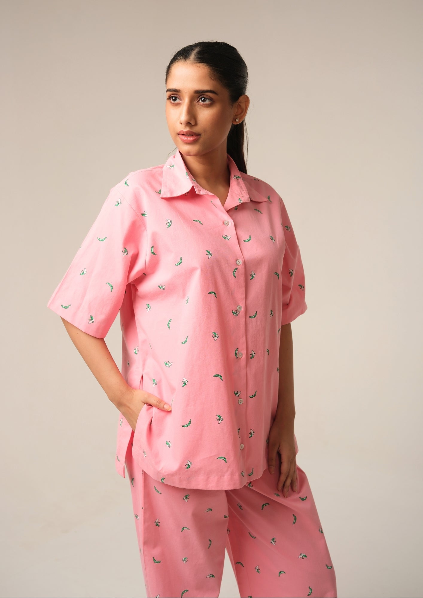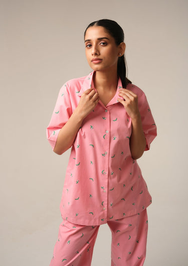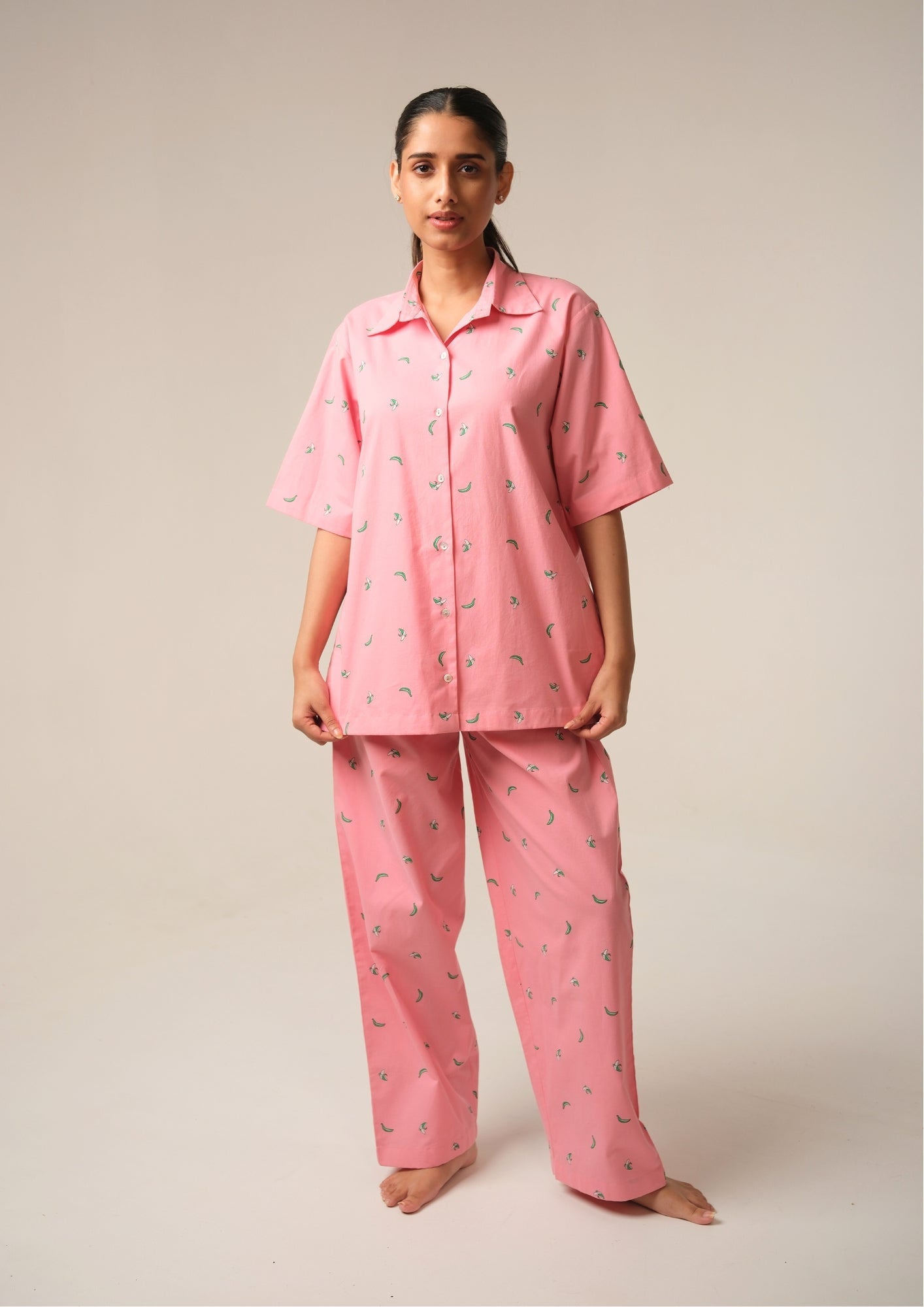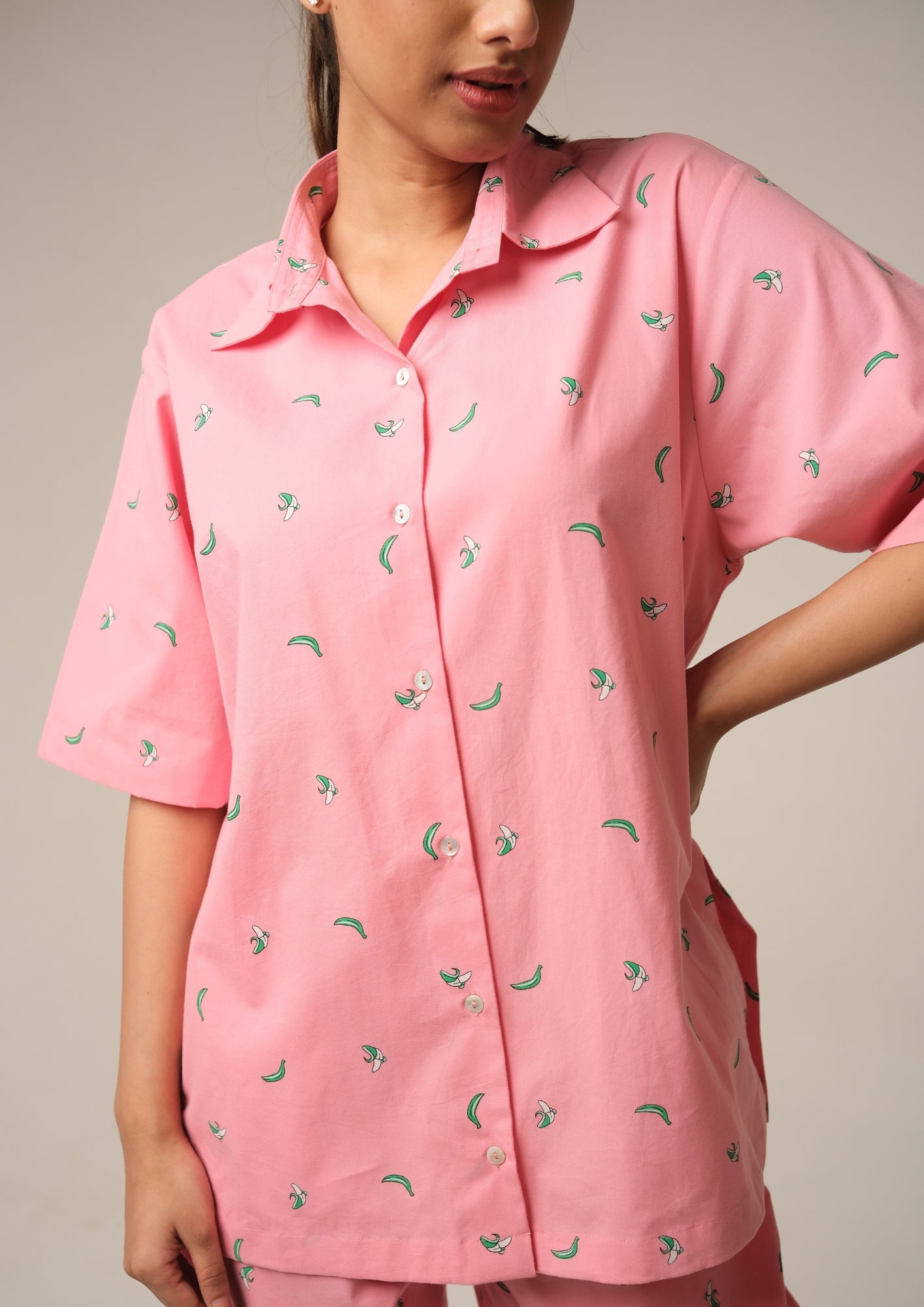 Bring playful charm to your nights with the Tropical Banana Bliss Night Suit — a fun, feel-good set that combines quirky design with cozy comfort. Featuring cheerful banana motifs on a pink base, it’s perfect for nights that call for color and joy.