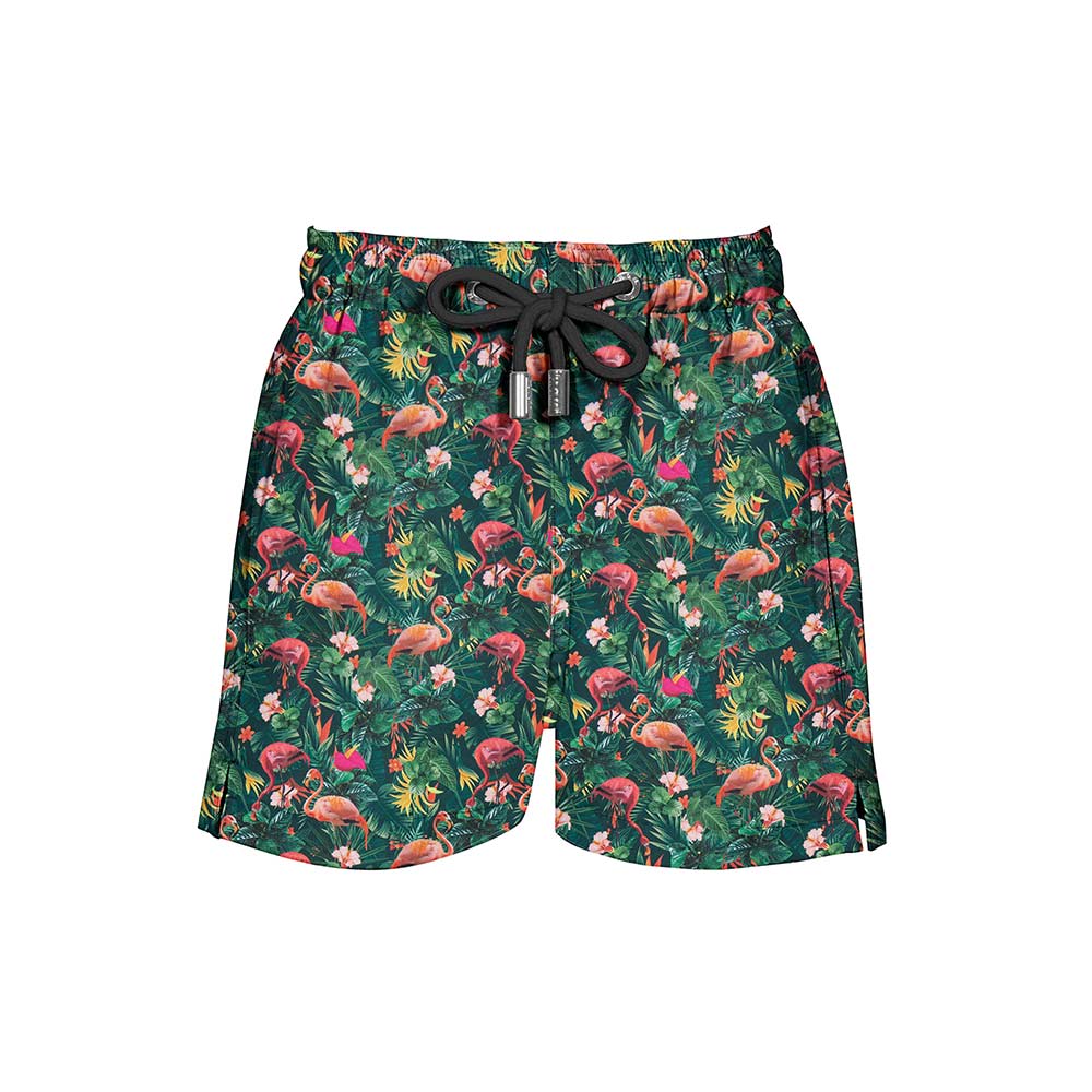 Fun fact: a group of flamingos is called a flamboyant—and this print lives up to the name. With its bold colours and striking design, these swim shorts are made for the spotlight. Whether you're poolside or heading to the afterparty, they bring the heat (and then some).