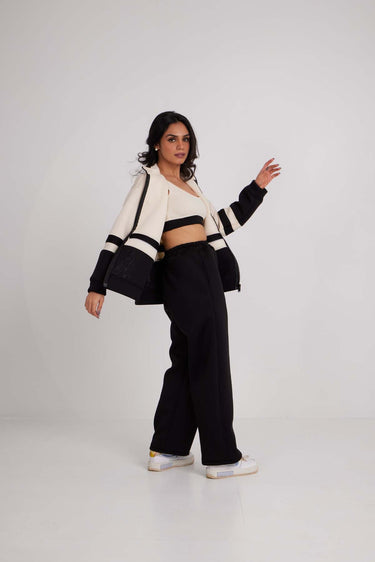 Step into effortless cool with the Urban Dusk Tracksuit — a bold, color-blocked three-piece set made for off-duty confidence. With a sleek zip-through jacket, sculpted crop top, and versatile sweatpants, this look is your all-day power play.
