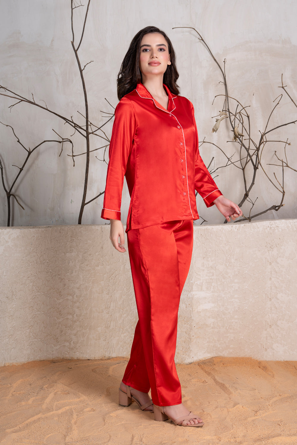 Indulge in timeless elegance with the Plain Satin Classic Collar Night Suit. Crafted from smooth, silky satin, this luxurious set features a classic button-down shirt with a refined collar, offering a sophisticated yet comfortable look. Paired with relaxed-fit matching pants, this night suit is perfect for unwinding in effortless style.