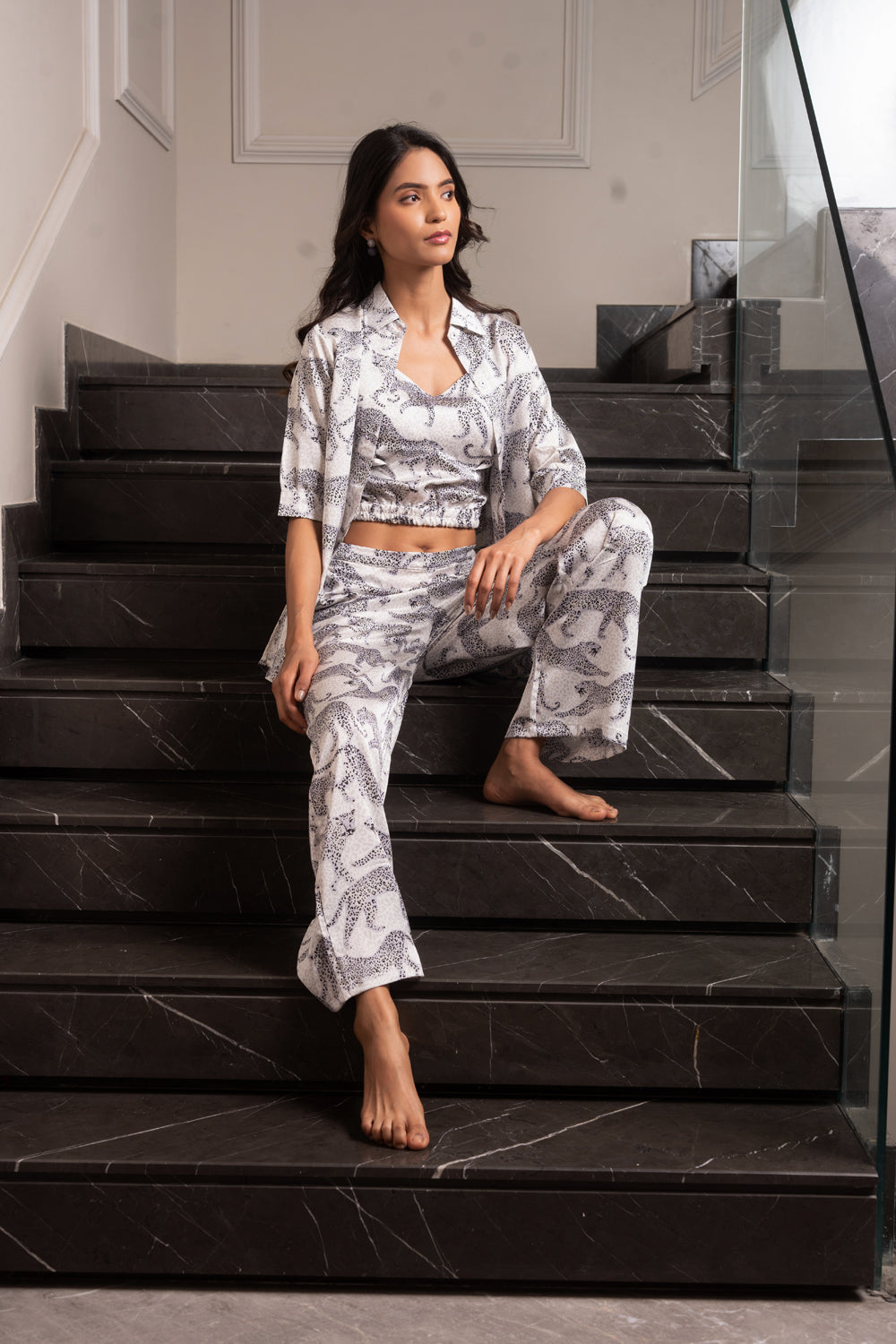 Indulge in comfort and luxury with the Satin Lounge Set, featuring a coordinated lounge pant, shirt, and bustier. Crafted from ultra-soft satin, each piece offers a smooth, luxurious feel that drapes beautifully. The relaxed-fit pant and classic shirt bring effortless sophistication, while the flattering bustier adds a chic, feminine touch — perfect for stylish lounging or cozy nights in.