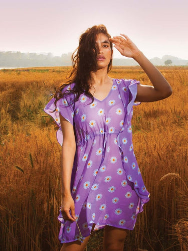 A breezy cover-up designed for laid-back days and sun-soaked escapes. This Purple Printed Cover Dress features a flattering V-neckline and drawstring waist for a silhouette that’s both easygoing and elevated. Lightweight and relaxed, it’s your go-to for effortless beach-to-brunch transitions.