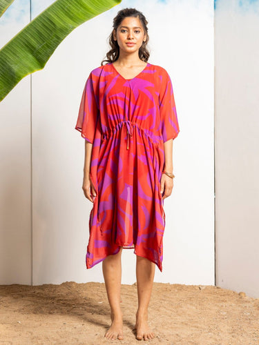 Slip into effortless elegance with our Sea Whip Tie-Waist Kaftan—a breezy beach essential designed for sun-drenched days and balmy evenings.