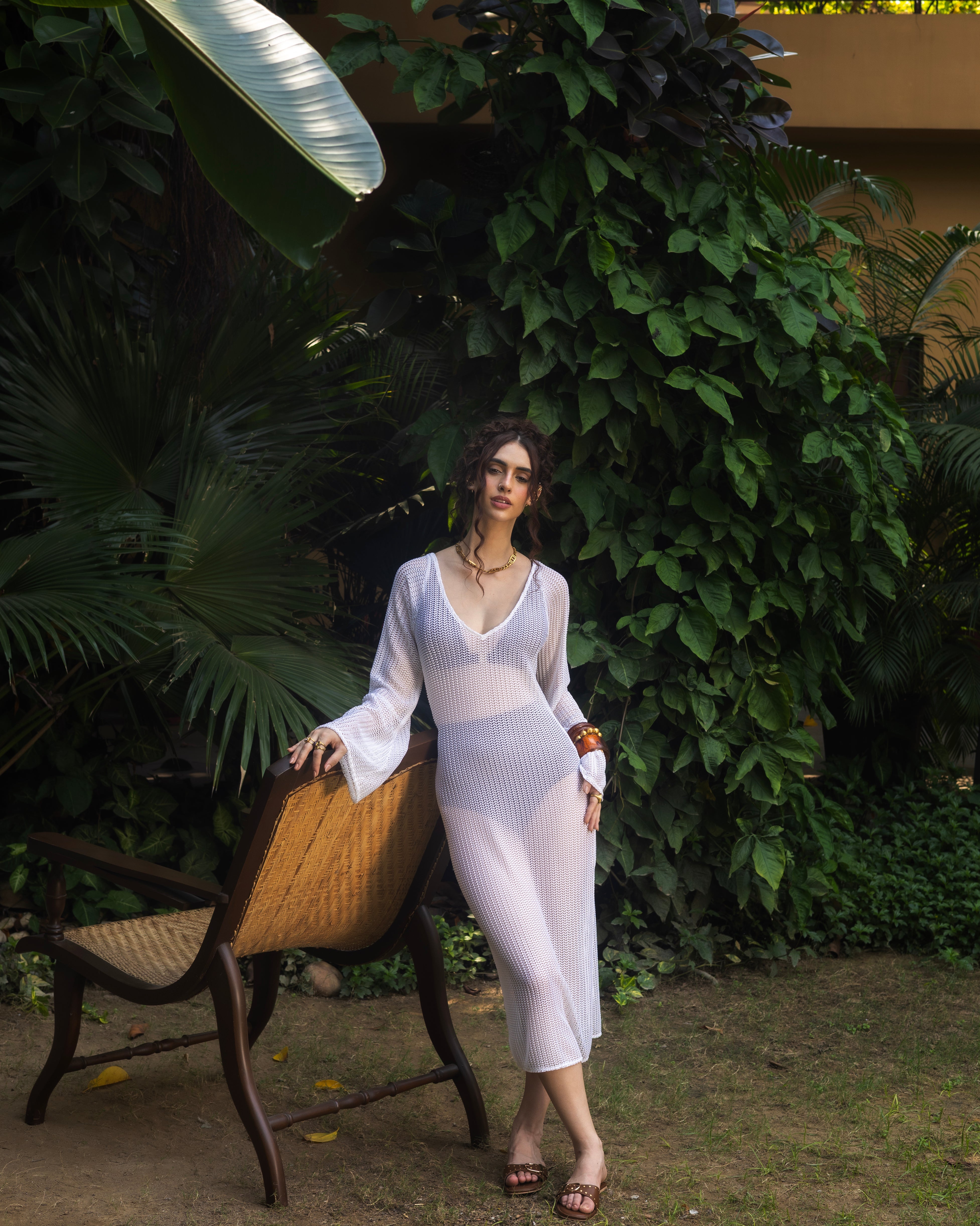 This white lace cover-up dress is the epitome of breezy beach elegance—light, luxurious, and effortlessly chic.