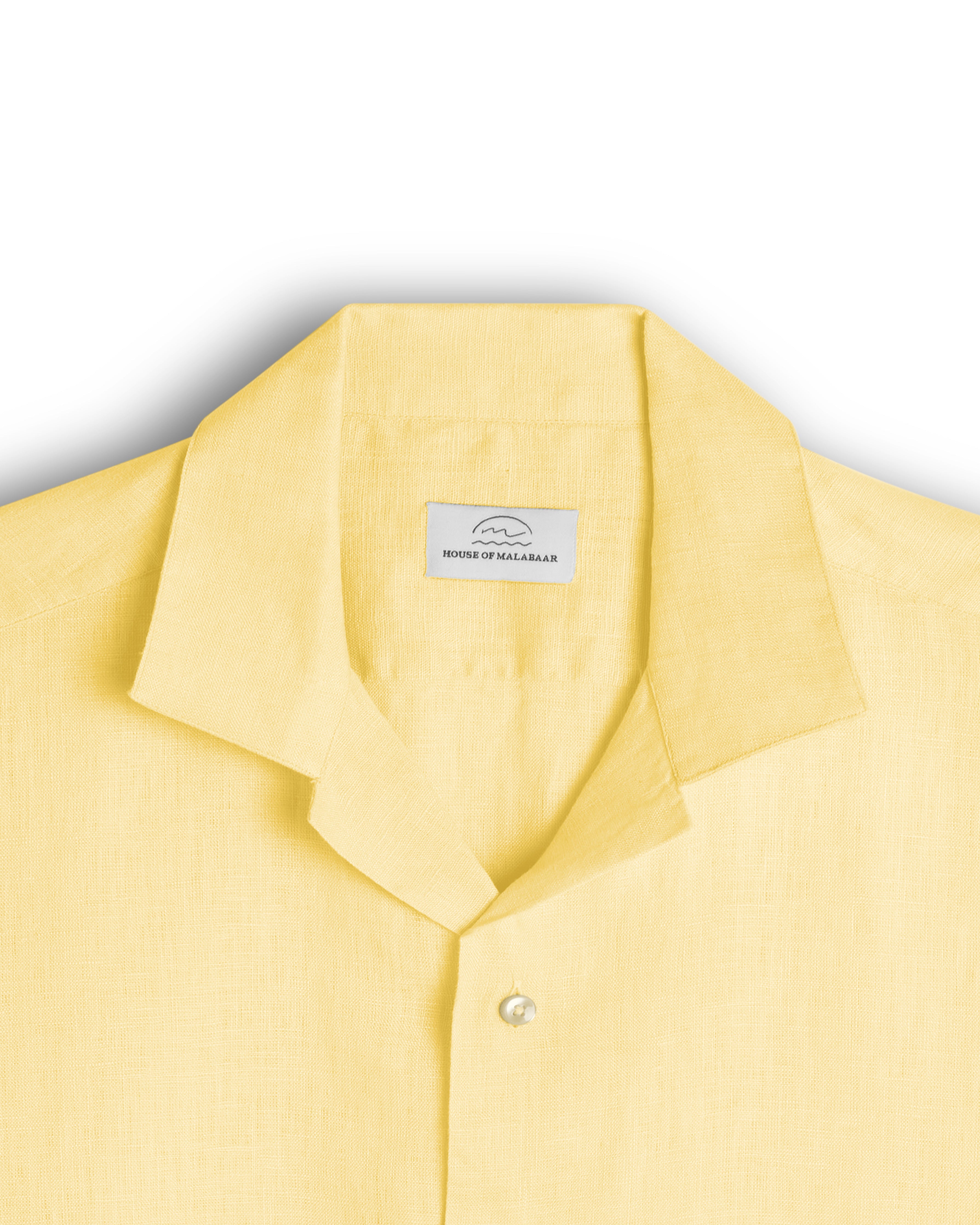 Crafted from 100% premium yellow linen sourced from Portugal, this Cuban Collar shirt from House of Malabaar brings sun-soaked elegance to your everyday wardrobe. With its tailored yet relaxed fit, it offers breathable comfort and easy movement—perfect for everything from beachside brunches to rooftop evenings.