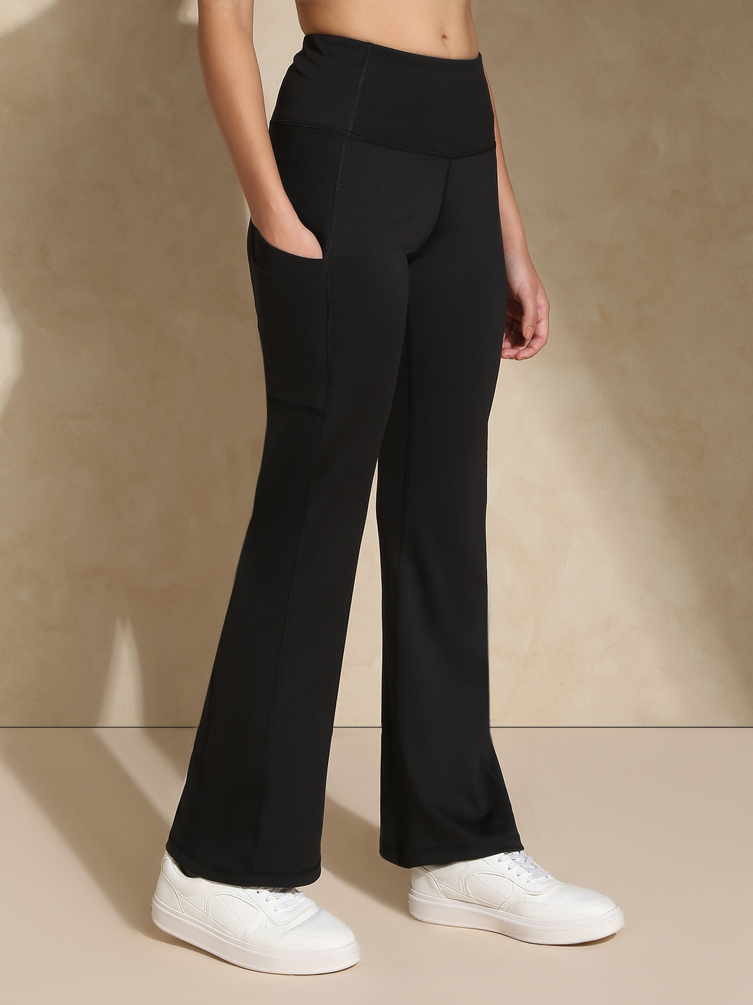 Designed to move with you, these high-waisted flared pants combine function, comfort, and a flattering silhouette. With breathable, sweat-wicking fabric and smart pocket details, they’re ready for everything from workouts to weekend plans.