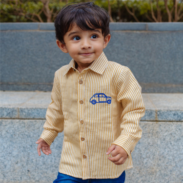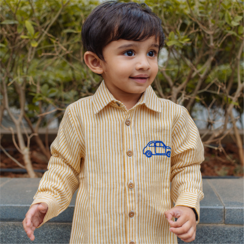 Shirts with personality? Yes, please. This striped button-down is crafted from buttery-soft organic linen and features a formal collar, cuffed sleeves, and a playful vintage car embroidery for just the right touch of fun. Ideal for dressy days, brunches, and everything in between.