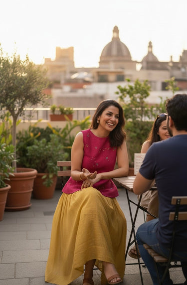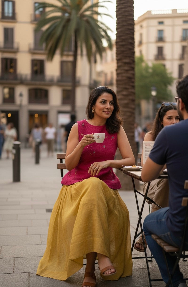 Ann’s Top is a playful wardrobe staple brought to life with artisanal detail. Crafted in khadi cotton, this round-neck, sleeveless silhouette features a subtle waist shape for a flattering fit. Scattered embroidery of 3D stars, delicate leaves, anchor thread, sequins, and beads in varying sizes adds a vibrant, textured finish that makes it truly unique.
