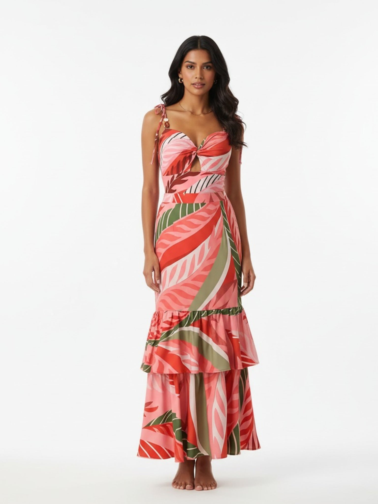 Make waves with the Paradise Ruffle Swimsuit & Skirt — a tropical-inspired set designed for bold, beachside glamour and effortless resort style.