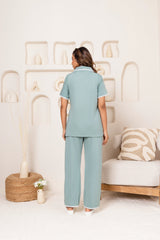 A classic silhouette with a romantic twist — this slim-fit PJ set features delicate lace details for an elevated take on everyday comfort. With a tailored top and easy-fit pajama bottoms, it’s your new go-to for feeling polished while you unwind.