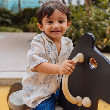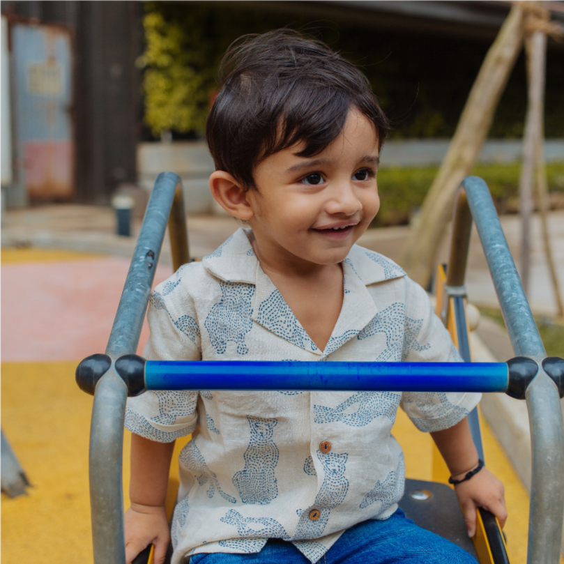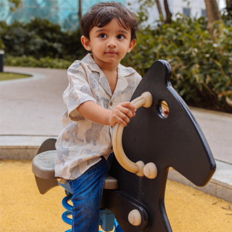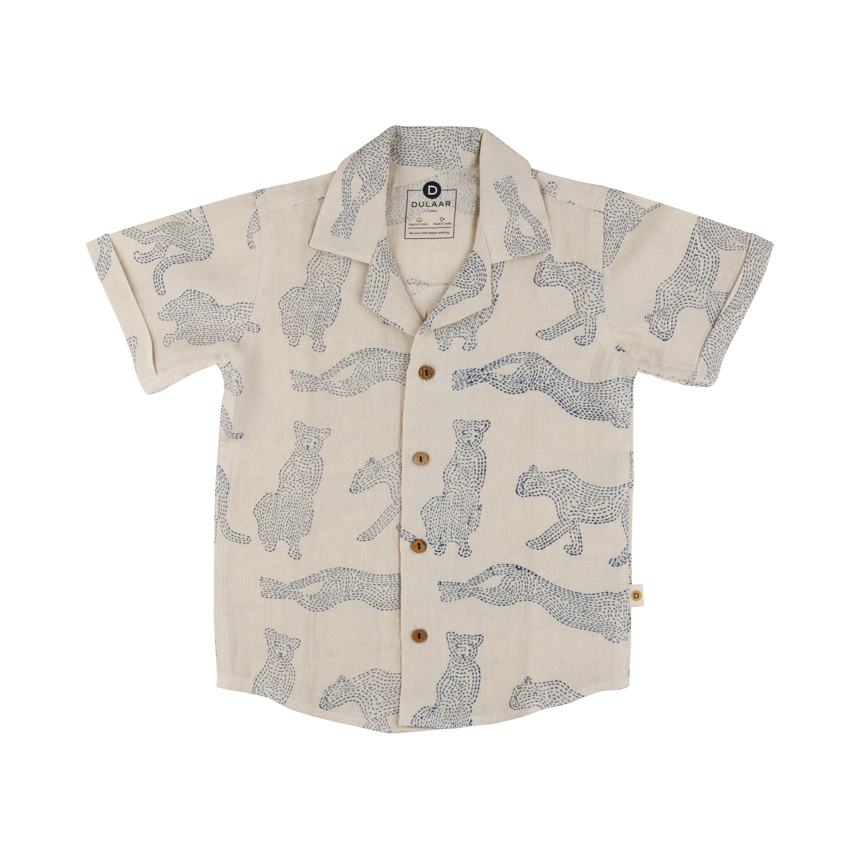 Shirts just got cooler. This breezy linen button-down features an open collar, short sleeves, and a bold cheetah blockprint — perfect for sunny playdates, brunches, and holiday strolls. Finished with sustainable coconut shell buttons and crafted in buttery-soft cotton linen, it’s equal parts playful and polished.