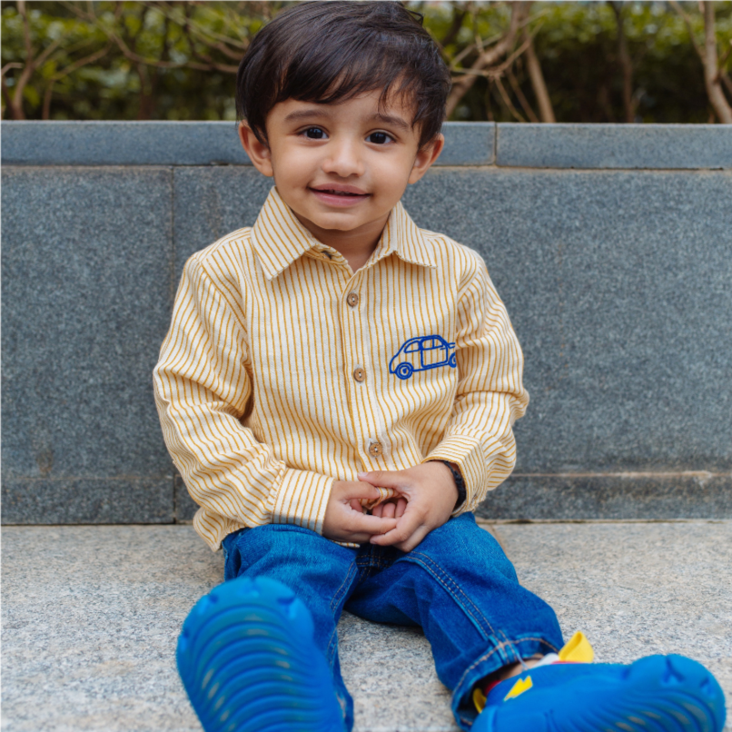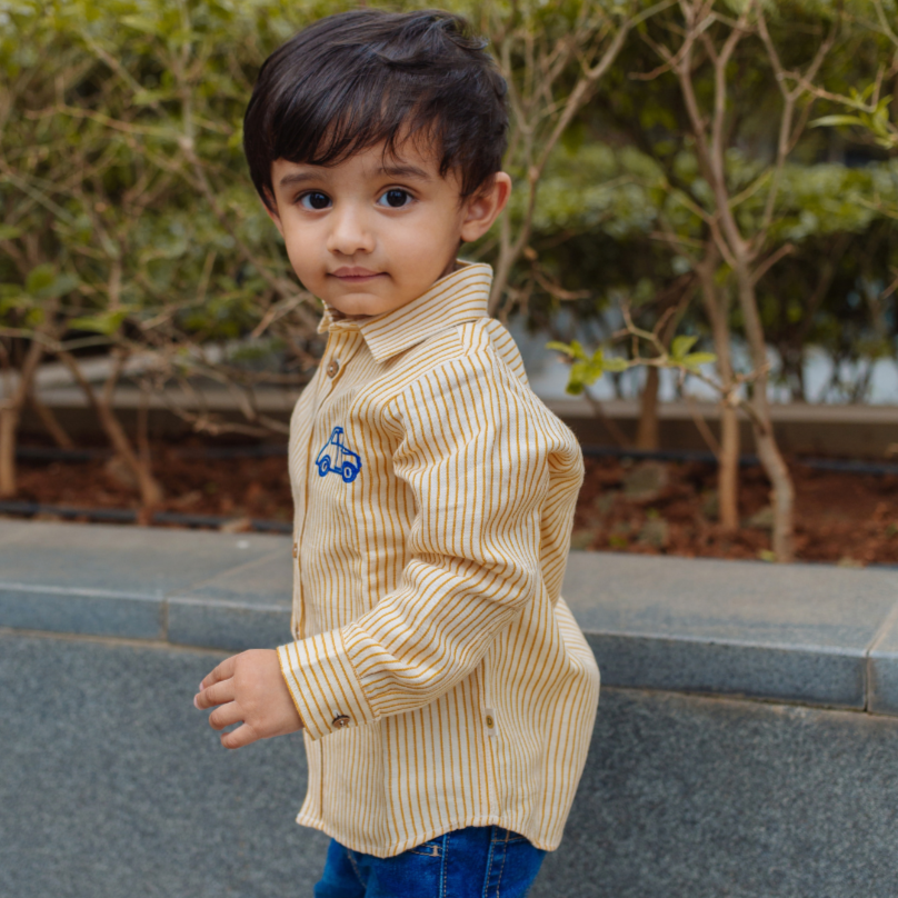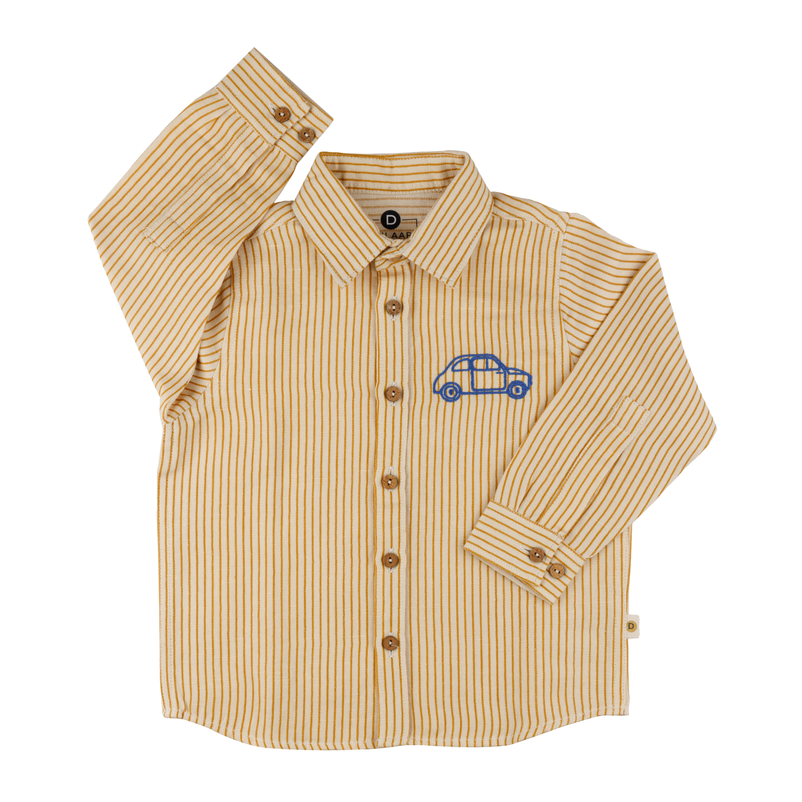 Shirts with personality? Yes, please. This striped button-down is crafted from buttery-soft organic linen and features a formal collar, cuffed sleeves, and a playful vintage car embroidery for just the right touch of fun. Ideal for dressy days, brunches, and everything in between.
