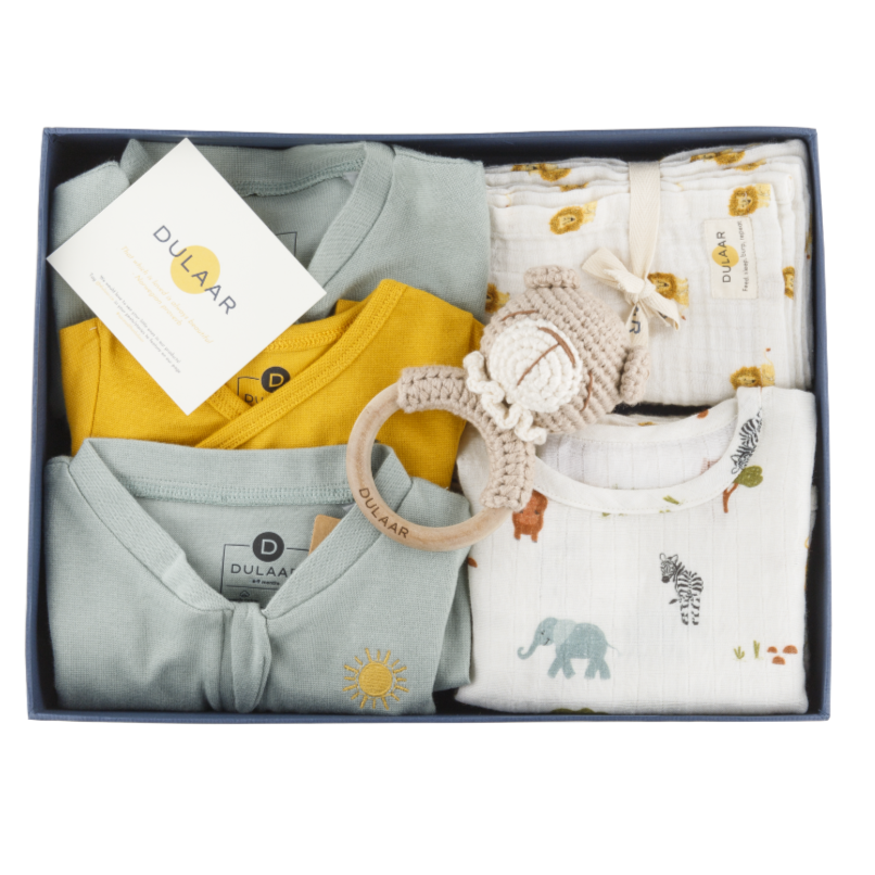 A soft and thoughtful welcome for the newest little arrival. This gift box is filled with breathable organic cotton and muslin essentials — thoughtfully chosen to support those first cuddly months. Available in Classic and Luxe options, and beautifully packed in our signature blue gift box.