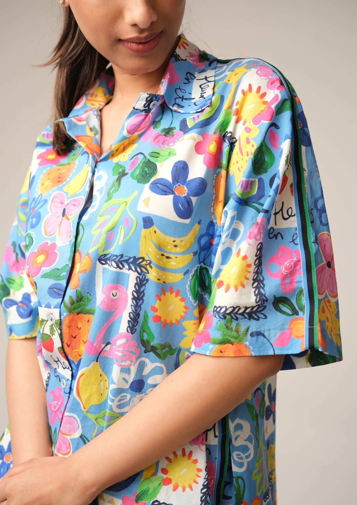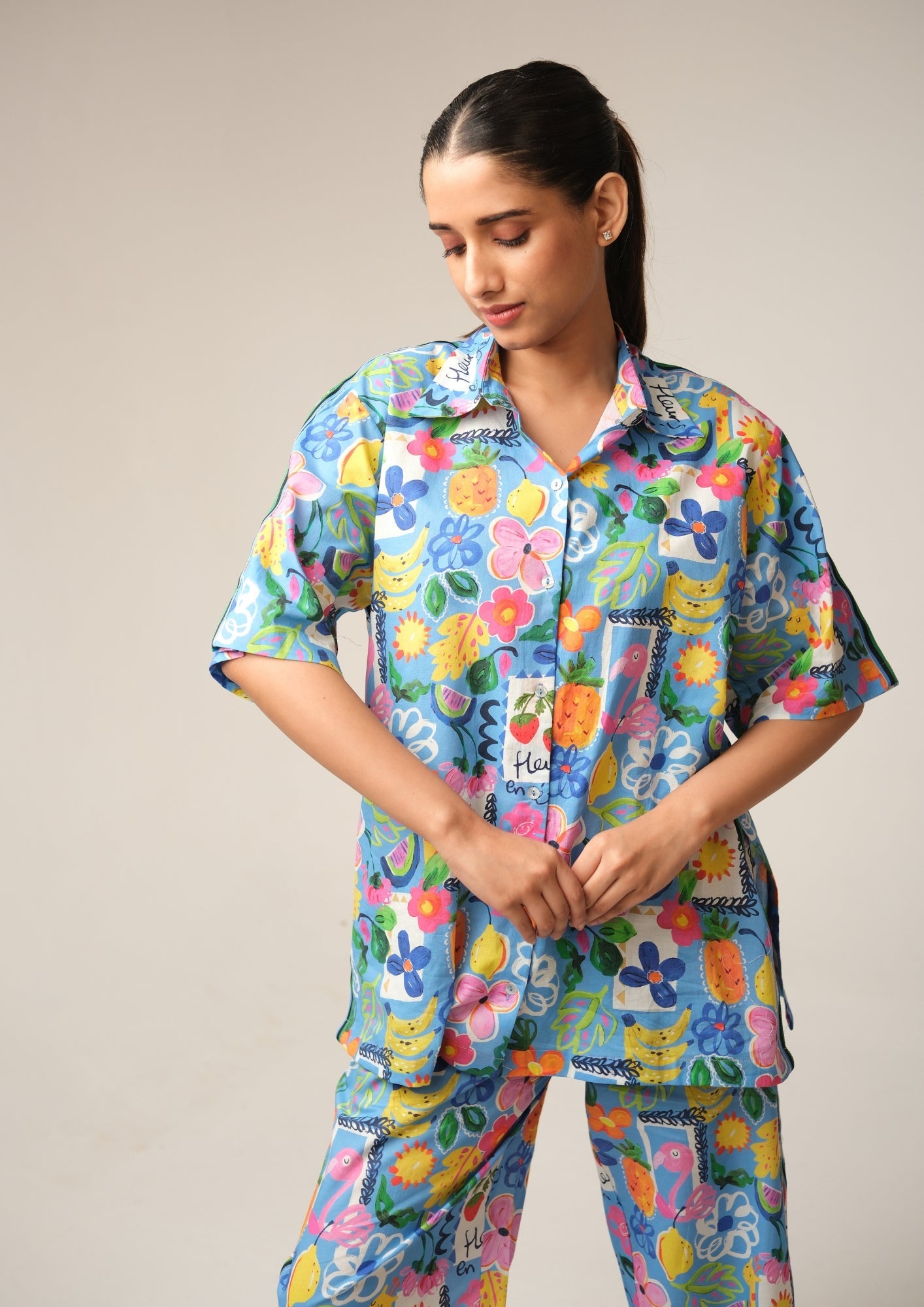 Bring a splash of joy to your bedtime with the Tropical Bloom Printed Night Suit. Designed in vibrant multicolour floral prints, this set adds a playful yet soothing touch to your nightwear collection. The soft, lightweight fabric feels gentle on the skin, while its relaxed fit ensures maximum comfort for lounging or sleeping in effortless style.