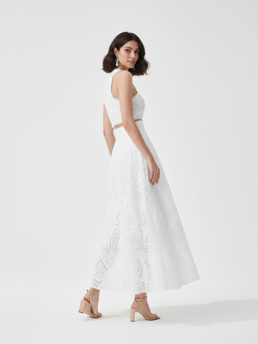 Limited Edition : Radiate timeless elegance in the Vera White Two-Piece Co-Ord Set, a dreamy combination of an embroidered crop top and flowing maxi skirt. Crafted in airy cotton fabric with intricate cutwork, this set is perfect for sunlit brunches, holiday getaways, or chic evenings out. Its fresh white hue and feminine silhouette make it a versatile statement look you’ll keep reaching for.