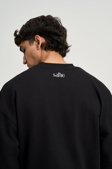 An everyday staple with a clean, minimal finish — this black sweatshirt delivers a premium oversized fit with subtle embroidery across the front, back, and wrist. Crafted from soft brushed cotton fleece in a midweight feel, it’s built for effortless comfort on and off the court.