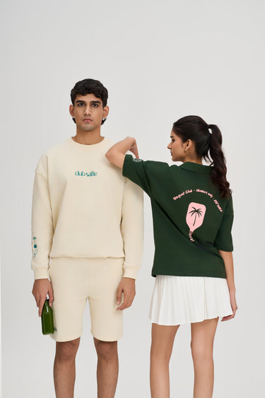 An elevated everyday staple, this white swan sweatshirt offers a premium oversized fit with clean, minimal embroidery on the front, back, and wrist. Crafted from soft brushed cotton fleece in a midweight 320 gsm, it’s designed for effortless comfort on and off the court.