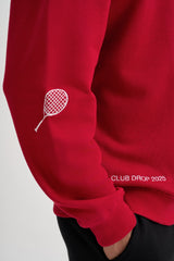 A bold yet minimal staple, this cherry red sweatshirt offers a premium oversized fit with clean, original embroidered artwork on the front and side. Crafted from soft brushed cotton fleece in a midweight 320 gsm, it’s designed for effortless comfort on and off the court.