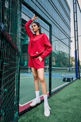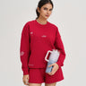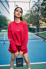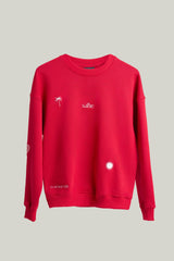 A bold yet minimal everyday staple, this cherry red sweatshirt features a premium oversized fit with original embroidered artwork scattered across the front, back, and sleeves. Crafted from soft brushed cotton fleece in a midweight 320 gsm, it’s designed for comfort on and off the court.