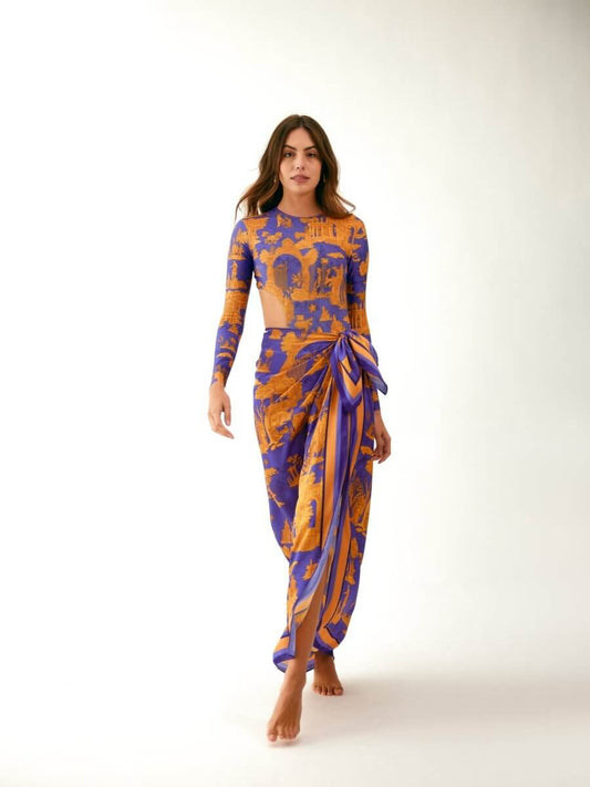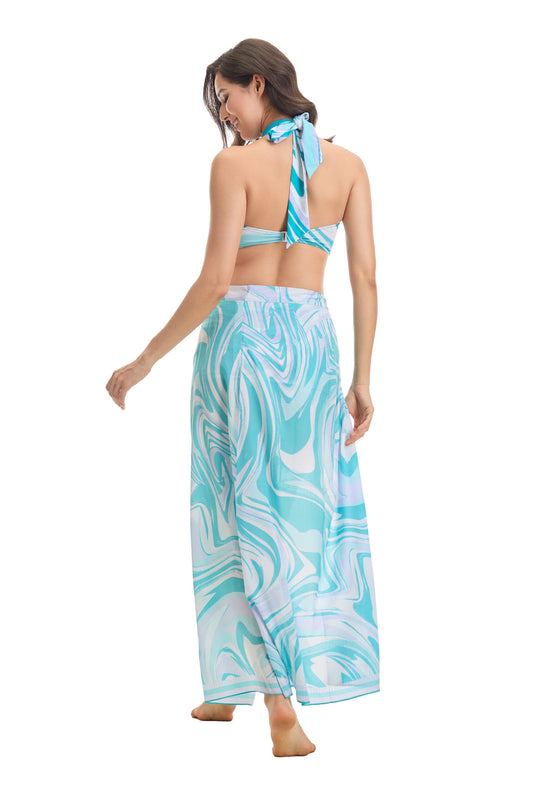 Oblique Swimsuit Set With Horizon Skirt In Madagascar