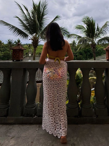 Make a statement at the beach with this intricate mandala crochet lace sarong. Designed with detailed circular lace motifs and a long wrap silhouette, it blends elegance with boho-chic charm. Easy to drape over any swimsuit, it’s a versatile cover-up that adds instant polish to your vacation look.