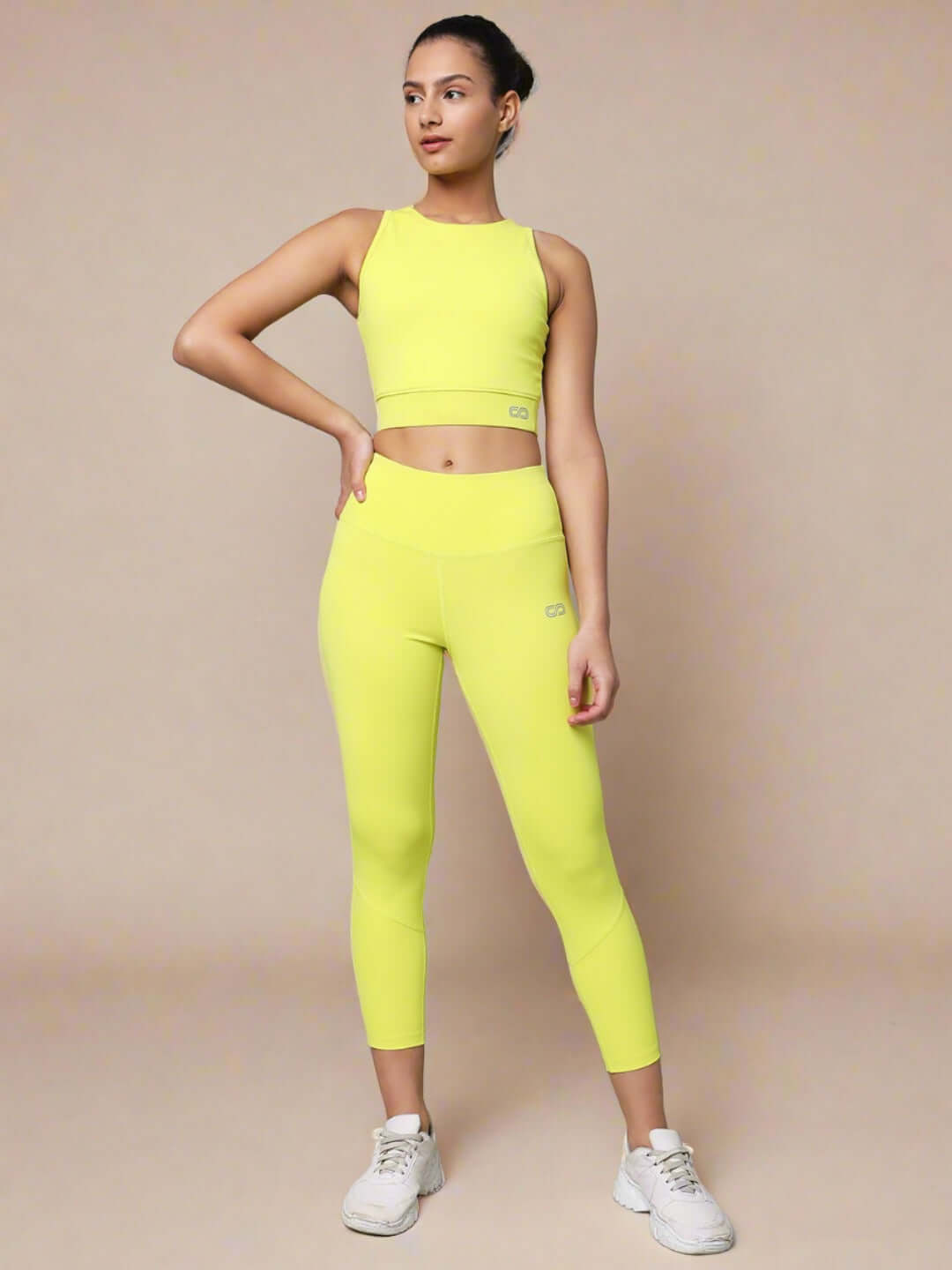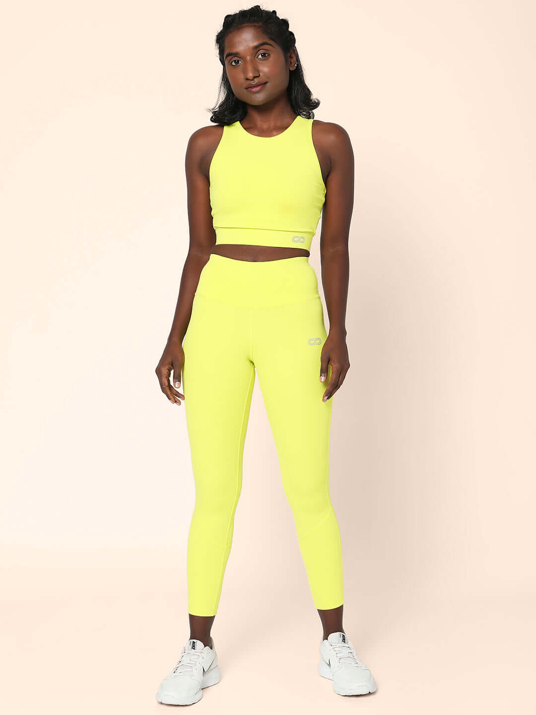 - High waist and 7/8 cropped length for a flattering, supportive fit