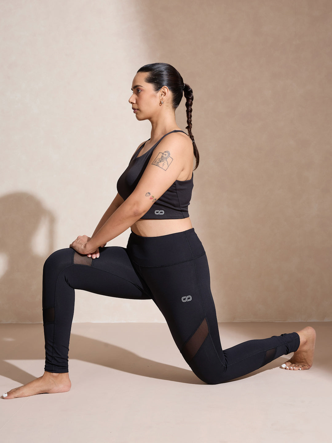 Designed for performance and style, these mesh panel leggings offer breathable comfort with sleek functionality. We recommend ordering one size smaller than your usual for the best fit.
