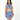 - Vibrant stretch fabric in cobalt blue with yellow tropical print