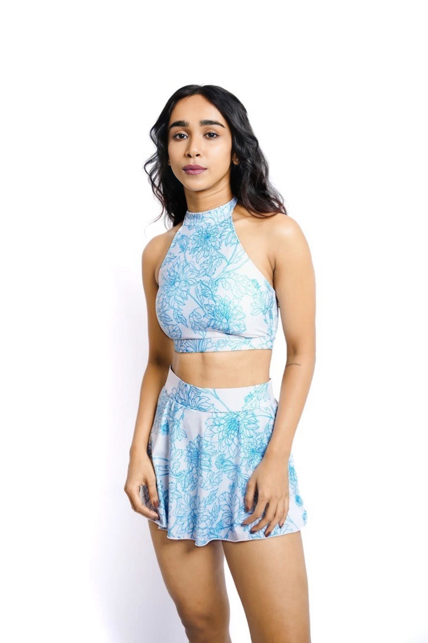 Make waves at beach clubs and yacht parties with this vibrant crop tank top and high-waist skirt swimsuit — designed for effortless glamour and standout style. From seaside lounging to sunset cocktails, this chic set ensures you’ll turn heads with every step.