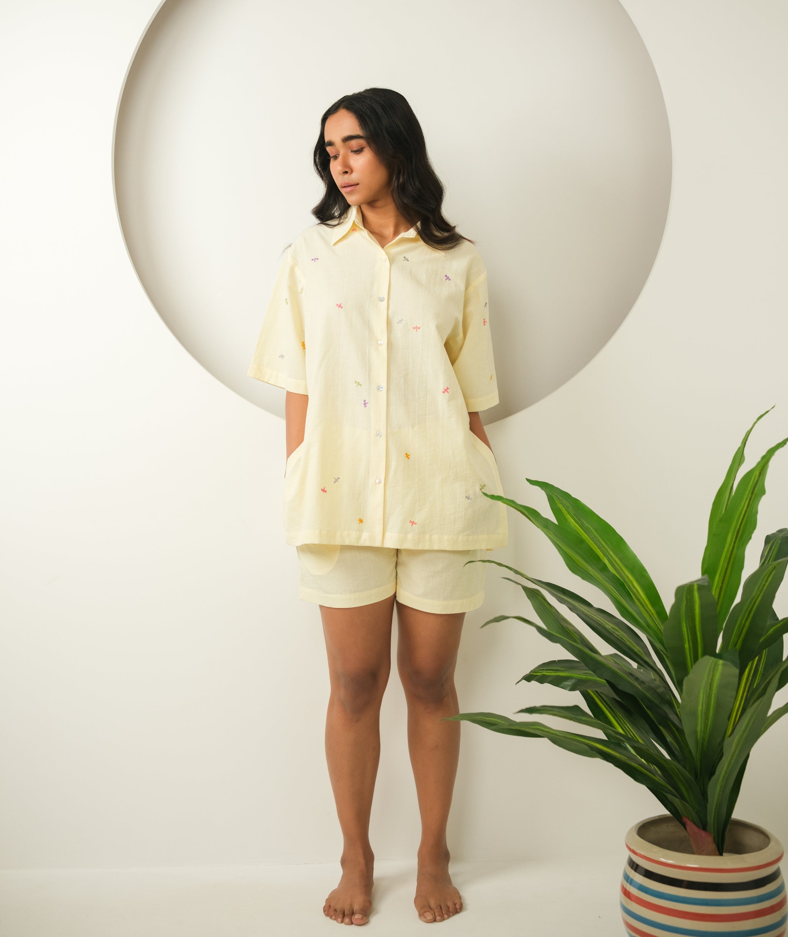 Soak in the calm of carefree days with the Dragonfly Dreams Shorts Set — a playful yet elegant two-piece crafted for breezy comfort. Light, airy, and charmingly embroidered, it’s made for both home and holiday.