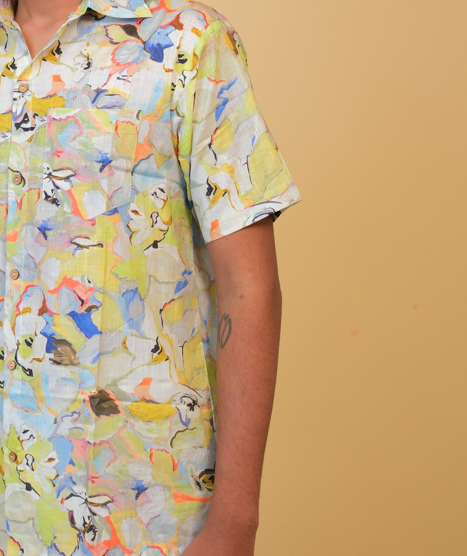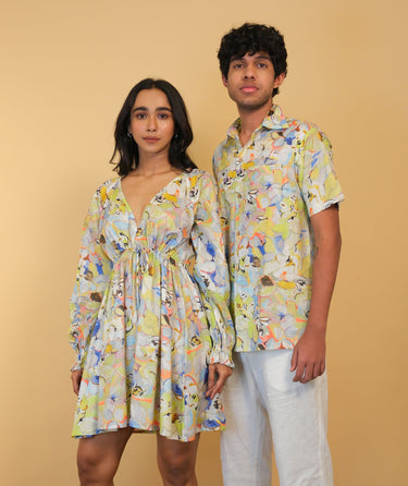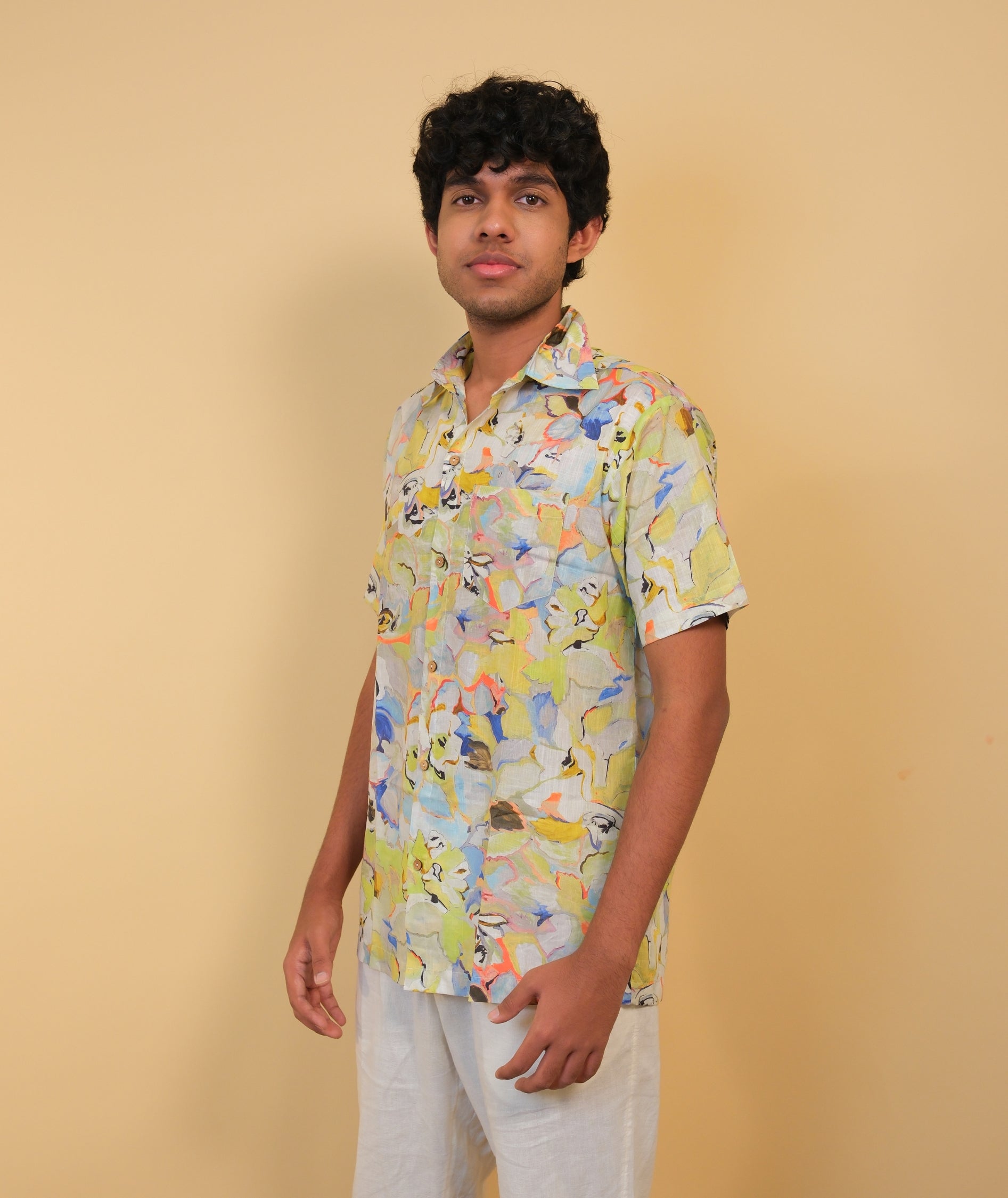 This beachwear printed shirt for men is where art meets leisure. Drenched in abstract tropical hues, it's designed to channel vacation ease with a tailored edge. Whether you're strolling barefoot on the beach or grabbing sundowners by the pool, this shirt keeps you stylish, cool, and camera-ready.