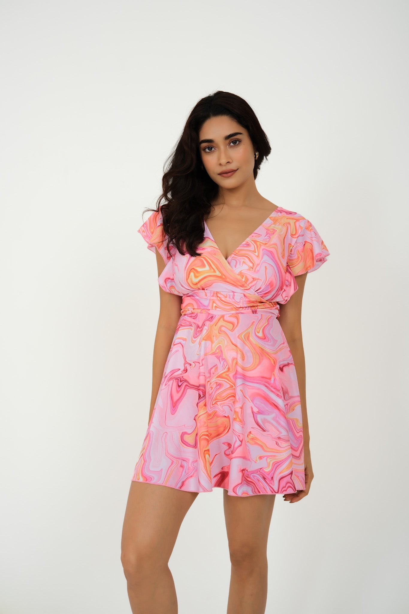 Turn heads with ease in our Frock-Style Garden Print Swimsuit — a graceful fusion of dress-like beauty and swimwear practicality. The wrap top and frill sleeves bring a touch of whimsy, while the built-in shorts keep you feeling secure and free to move. From beachside lounging to oceanside twirls, this vibrant piece ensures you shine with effortless style.