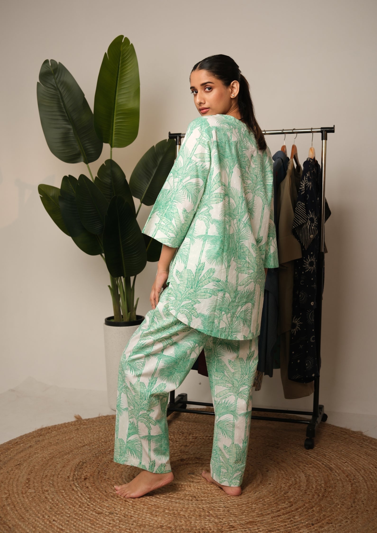 A relaxed yet refined co-ord set that captures the essence of laid-back tropical luxury.