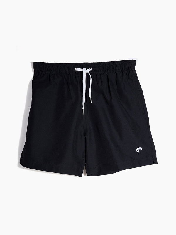 Dive into classic style with Shore Borne's solid black swim shorts. These 16.5-inch versatile swimming trunks are designed for comfort with soft mesh lining and convenient pockets for essentials, providing understated elegance whether you're lounging poolside or catching waves.