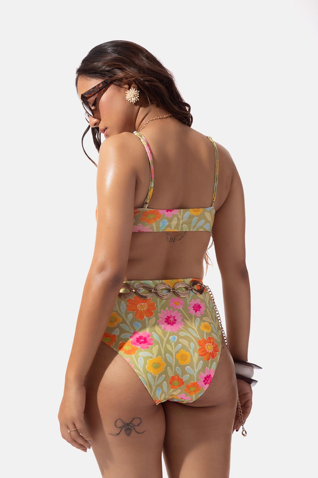 Flirty, fresh, and made for sun-soaked days this green floral bikini top features a playful front-tie silhouette with removable cups for a fit that feels just right. The adjustable tie lets you control the shape and support, while the ultra-soft stretch fabric keeps things comfy from poolside hangs to beachside adventures.